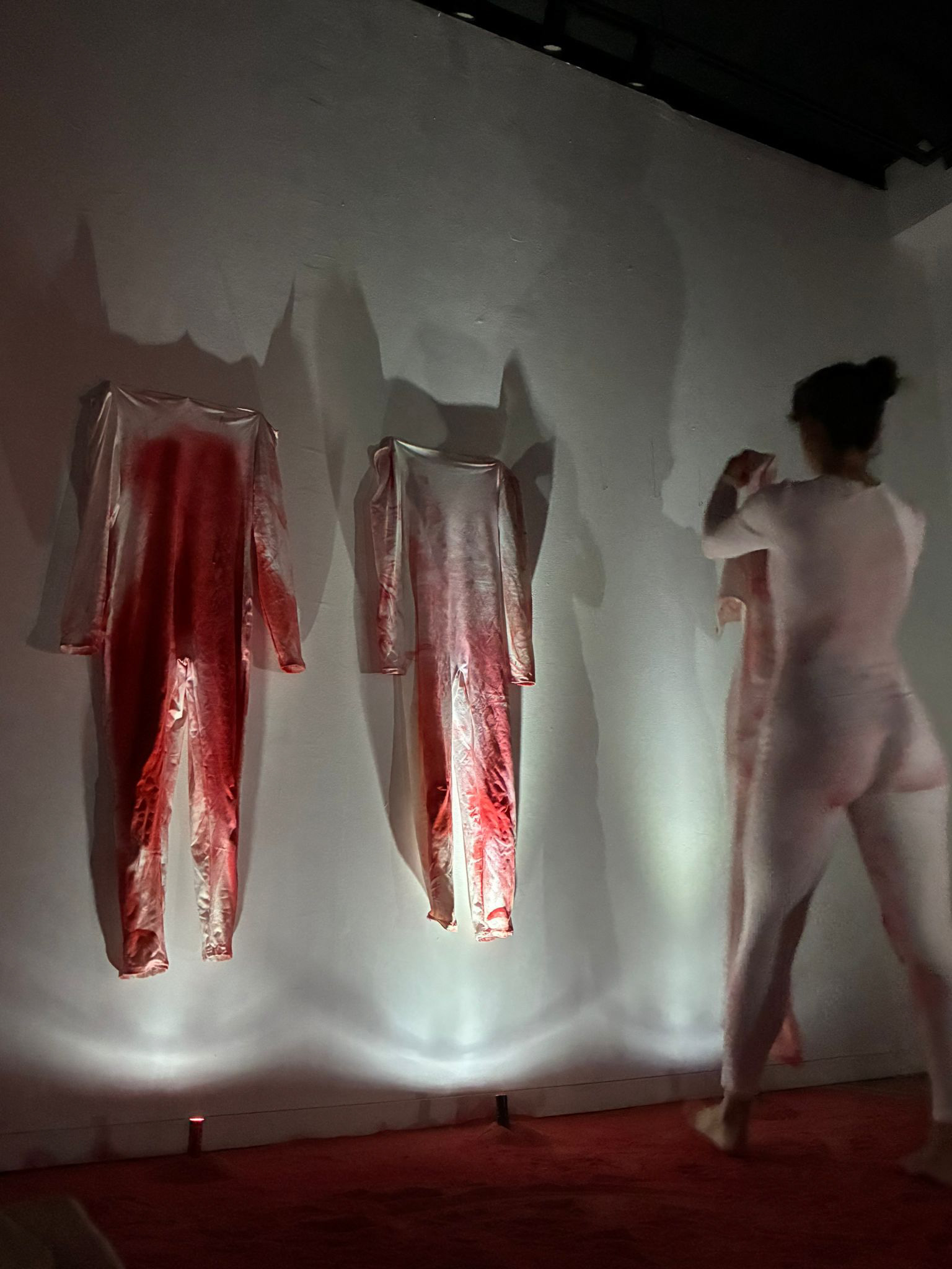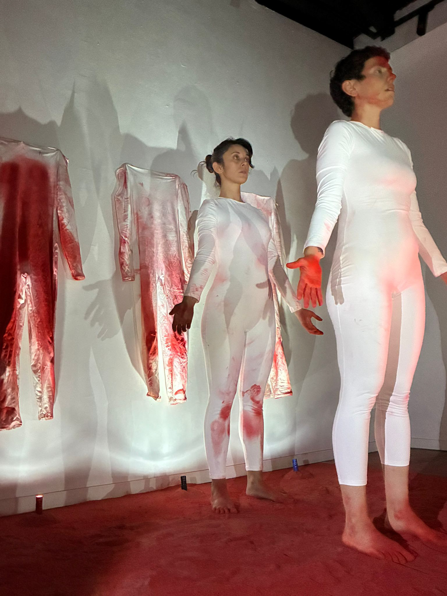 Transmutar és ritual, memòria i alliberació. Projecte multidisciplinar lligat per una forta base instal·lativa, que investiga els processos interns de transformació a partir d’una aproximació ritual i simbòlica. El projecte s’articula a partir de tres espais que funcionen com a llindars: un descens a allò latent, el pas per l’indeterminat i l’obertura a la resignificació. L’obra no es presenta com a lloc d’observació, sinó com un espai que es completa amb la presència de l’espectador, fent que formi part de la mateixa obra. L’inconscient El recorregut s’inicia en un ambient de foscor il·luminat únicament per una espelma. El terra cobert de carbó —restes de foc, matèria després de la combustió— es presenta com a superfície simbòlica: memòria residual del que ja ha cremat però continua marcant. Aquí s’inaugura l’escolta: un espai on el silenci que el mateix espectador romp amb les seves passes i esdevé contenidor de tot allò que roman latent. L’espai és una invitació a mirar el que sovint queda soterrat en un punt molt profund de l’inconscient. Trancisió La penombra s’obre lleument i, a les parets, figures capturades en paisatges indefinits semblen moure’s entre vigília i somni. La llanterna vermella que rep el visitant és més que una eina de llum: és un gest de confiança, una invitació a ser qui revela, qui guia, qui activa la imatge. A mesura que la llum avança, les escenes s’aclareixen fins a culminar en un ascens col·lectiu que anuncia la possibilitat de trobar una sortida interior, un viatge cap a la llum. Catàrsi Es desplega la llum, l’espai de la metamorfosi. En una sala blanca el protagonista és un rectangle d’arena vermella. Peces de roba tenyides d’aquesta arena es disposen com restes d’antics relats ja abandonats, com la pell d’una serp que reneix. La performance succeïda deixa rastres de capes que cauen, històries que s’afluixen, cordes simbòliques que deixen d’apretar. Transmutar planteja així, un espai on la memòria pot ser revisada i reconfigurada. El projecte defensa que la transformació no s’assoleix per dissoldre el passat, sinó per mirar-lo de manera conscient i permetre que adopti noves formes. En aquest sentit, la instal·lació i la performance esdevenen eines de reflexió col·lectiva oferint un lloc per a l’aparició d’un estat renovat.